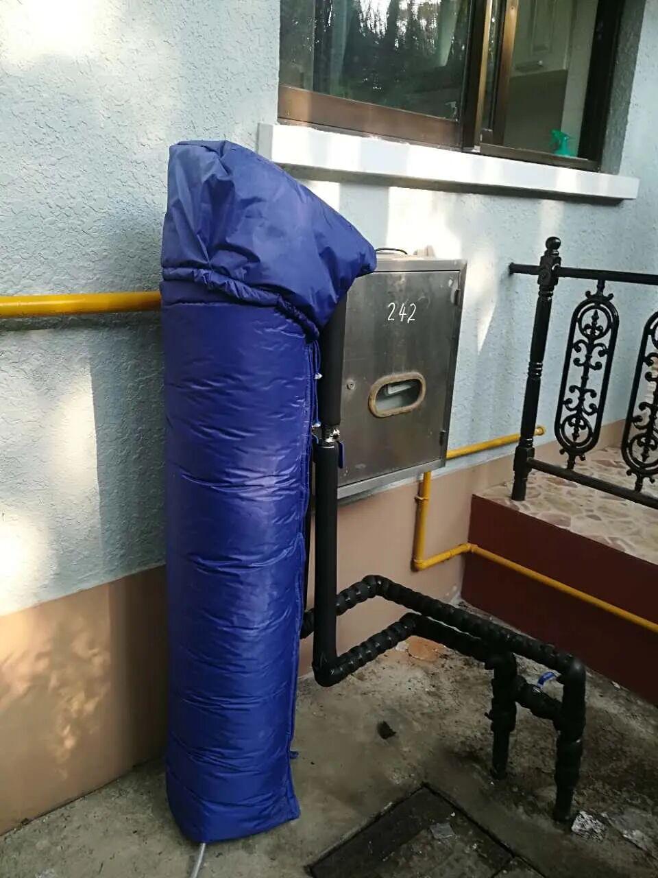 Any visible pipes, valves, joints or plastic canisters—especially on outdoor areas, balconies or near exterior walls—should be wrapped with insulation or protection coats. Think of it like a “winter coat” for your plumbing.