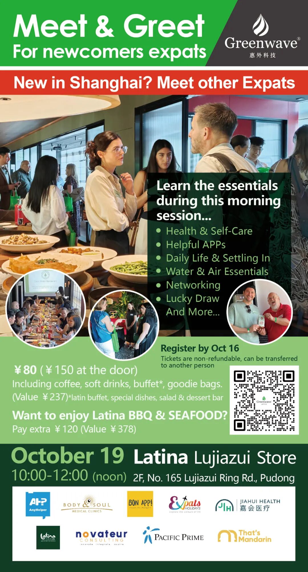 Whether you want to set up the right apps, build a healthier routine, meet fellow expats, or gather the “need to know” info and settle in faster, this session is designed to make life simpler and smoother in Shanghai.