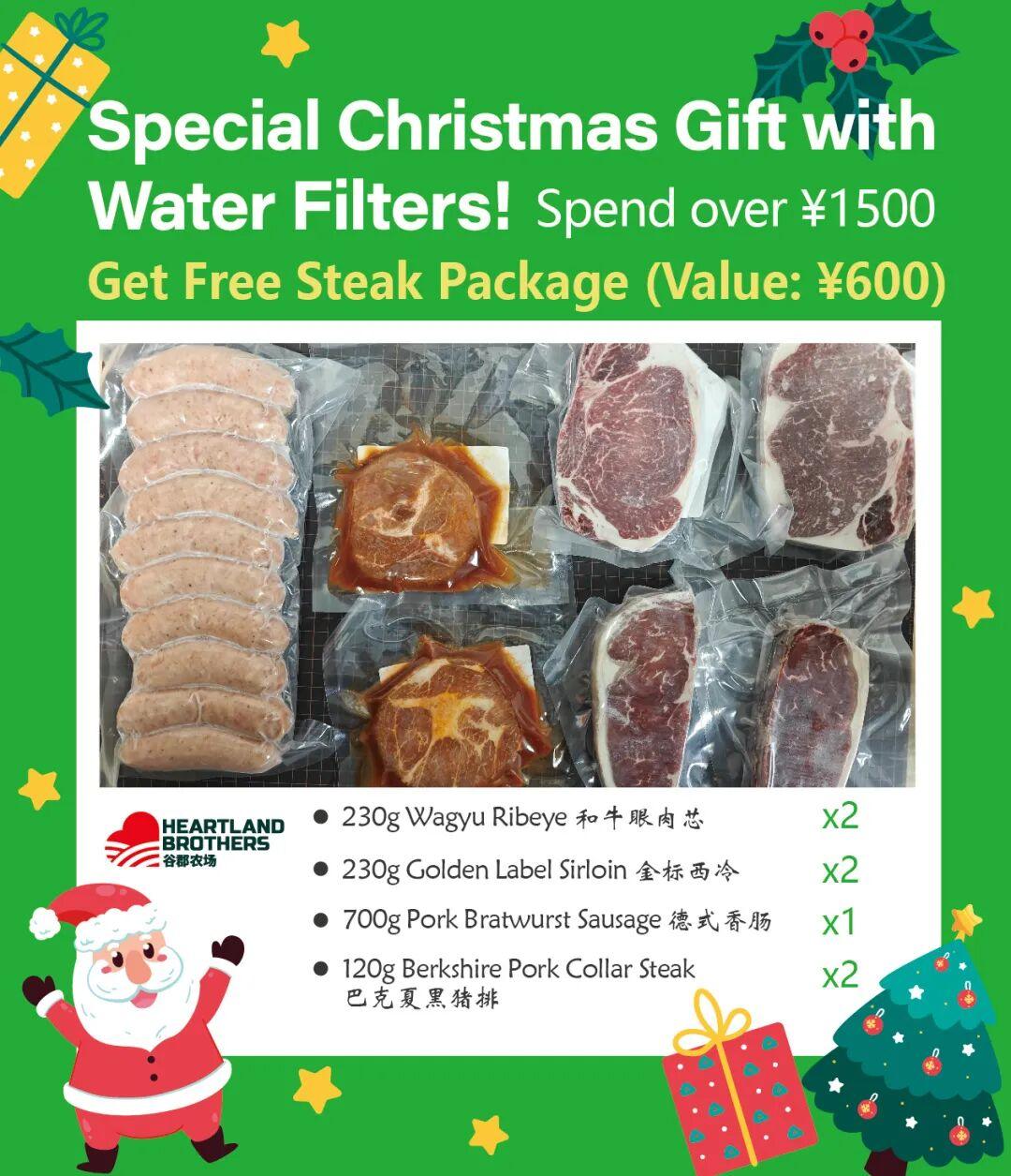 Have you been thinking of purchasing Greenwave water filters or renting our drinking water purifiers? Are you an existent client who needs regular filter replacements? Enjoy current discounts with an extra free steak package valued at ¥600, from today until December 31, 2025! (excludes corporate clients and air-filtration related services)
